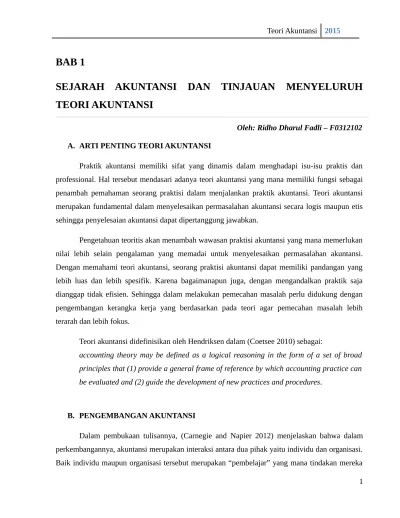 Sejarah perkembangan teori akuntansi sejarah awal akuntansi berbagai usaha telah dilakukan untuk mengidentifikasi tempat dan waktu lahirnya sistem . Sejarah perkembangan teori akuntansi tugas ini disusun guna memenuhi tugas mata kuliah teori akuntansi dosen pengampu : Sejarah perkembangan akuntansi di indonesia tidak terlepas dari nuansa. Tugas kelompok mata kuliah teori akuntansi sejarah dan perkembangan akuntansi disusun oleh: Bab ii landasan teori a.